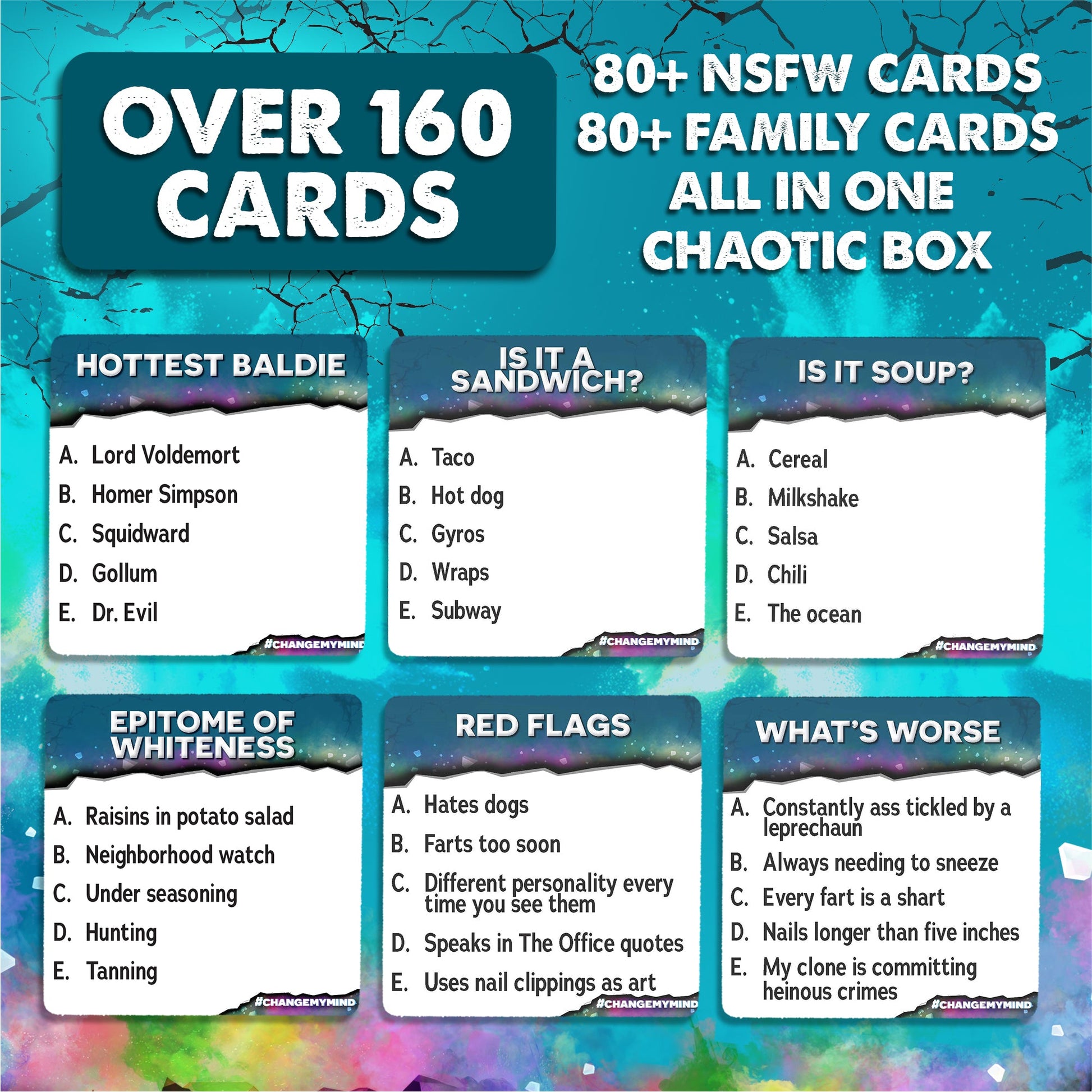 CONTENT WARNING: This adult party game contains explicit and obscene topics that will make your jaw drop! Not for the faint of heart! Don't say we didn't warn you ;).