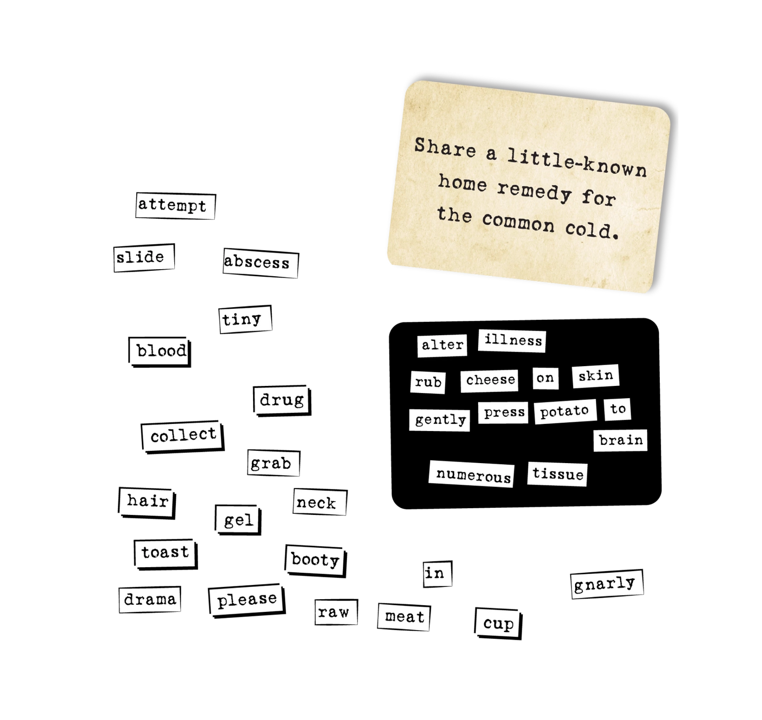 Packed with nearly 200 brand new prompt cards, from "Explain a vasectomy" to "Write a cheer for your high school chess team", you'll also get 120 new handpicked words to make your sentences even weirder.